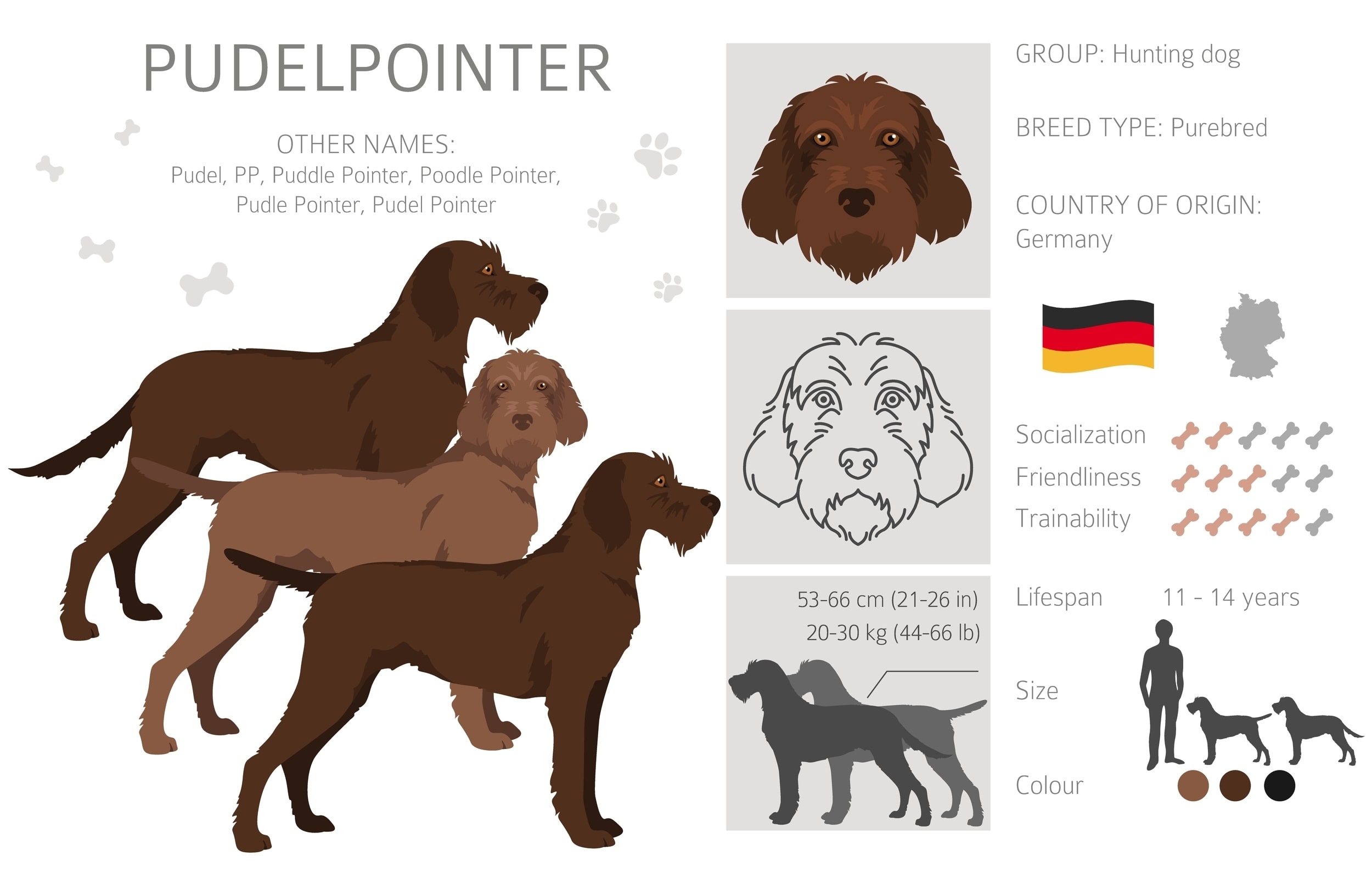 - Socialization with families, children, other pets, and neighbors helps pudelpointers grow into friendly companions.