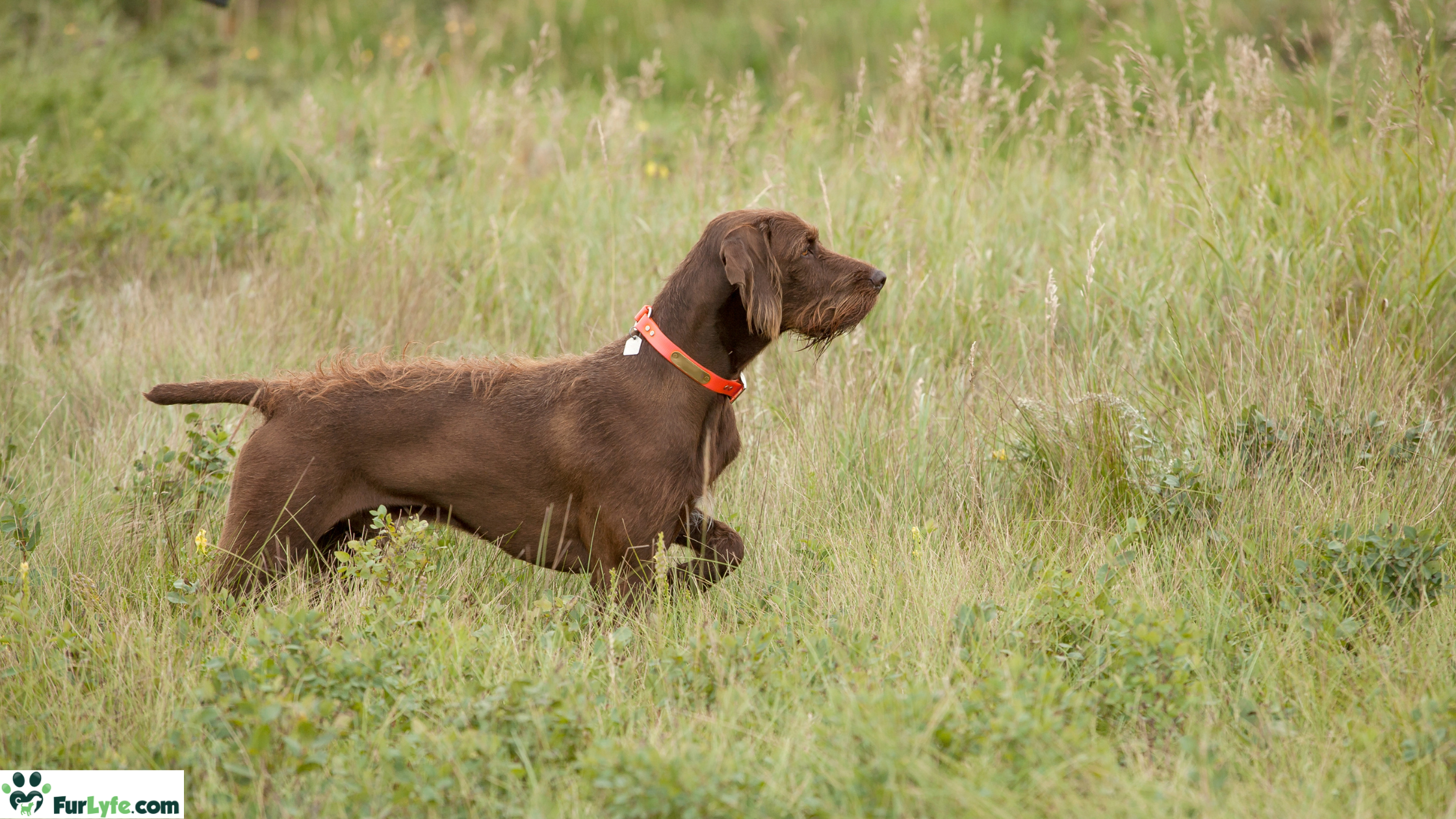 One of the most distinctive features of this pointing dog is its harsh, wiry coat. The outer coat is dense, water-resistant, and weatherproof—an essential trait for a dog designed to work in all types of environments, from thickets to icy water. This medium-length coat lies flat against the body and provides excellent protection with minimal shedding.